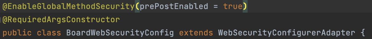 사용 예 ) @EnableGlobalMethodSecurity(prePostEnabled = true)